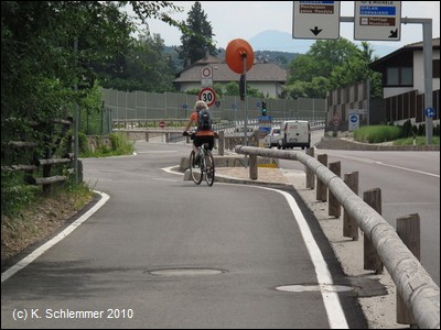 Auf der Bahnstrecke der ehemaligen Überetscher Bahn von Bozen nach Kaltern an der Südtiroler Weinstraße führt ein 16 km langer Radweg aus dem Tal der Eisack, Talfer und Etsch heraus in die Berge. Der 2 km kurze Anschluss zur Talstation der Mendelbahn (Standseilbahn) ist ebenfalls als Radweg beschildert.