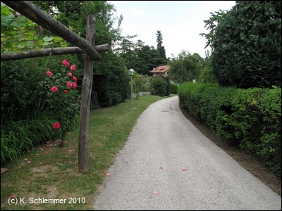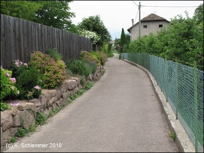 Es geht entlang der Straße zum alten Bahnhof von Eppan.