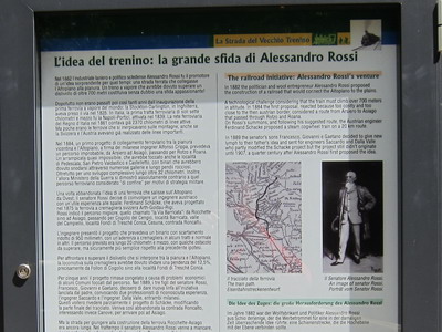 Alessandro Rossi, ein Industrieller und Politiker(!) kam 1882 auf die Idee zu dieser für damalige Verhältnisse unglaublichen Bahnstrecke. Der Radweg führt weiter bergauf zum Scheitelpunkt bei Treschè Conca.