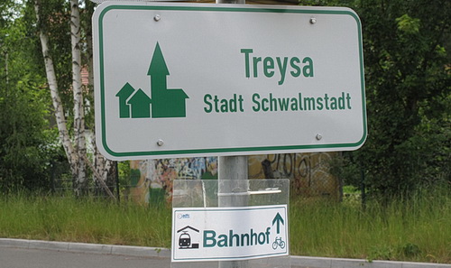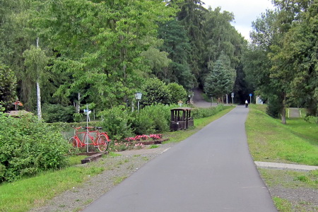 An der nächsten Straßenkreuzung wird der Ortsrand von Treysa erreicht. Dichte Vegetation begleitet die Trasse in einer Linkskurve Richtung Bahnhof. Nach einer kleinen Brücke endet der Radwegs am Parkplatz Haaßehügel.