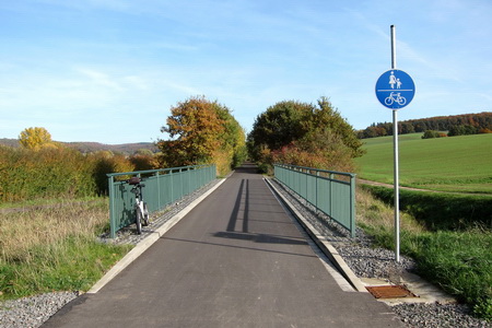Bei der Überwindung des Höhenzuges mit etwa 220 m Höhenunterschied hatte man bei dieser Bahnstrecke nicht die „Tunnellösung“ gewählt, sondern eine Trassierung mit weiten Höhenschleifen über die Ausläufer des Knüllgebirges. Weite Blicke über die Berglandschaft und einsame Wälder sind das Kapital dieses Radwegs, bei dessen Gestaltung man sich viel Mühe gegeben hat. Hindernisfreie Straßenkreuzungen, Rastplätze und Bahnrelikte zur Erinnerung an die Eisenbahnzeit sind einige Details, die diese Fahrradstrecke zu einem Erlebnis machen. Anfangs- und Endpunkt sind mit der Regionalbahn erreichbar, und es gibt Anbindungen an die hessischen Radfernwege. Der Radweg ist zwischen Loshausen und Wahlshausen Teil der deutschen Mittelland-Route D4.