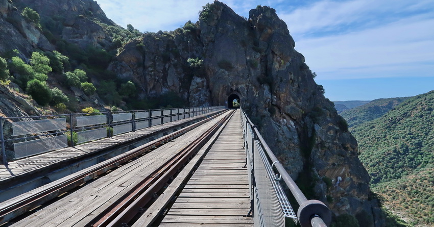 Das Viadukt ist mit 133 m Länge auch ein sehenswertes Bauwerk: auf drei steinernen Pfeilern überbrückt es in 19 m Höhe den Bach Las Almas.
