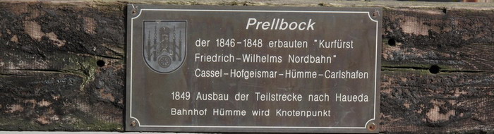 Als Stichbahn der Friedrich-Wilhelms-Nordbahn verband die Carlsbahn die Stadt Karlshafen über Hümme mit der Stadt Kassel. Die Strecke wurde 1848 in Betrieb genommen. Wegen der zunehmenden Verlagerung des Verkehrs auf die Straße wurde der Personentransport 1966 eingestellt, vereinzelt fand wohl noch Güterverkehr statt. Der am linken Weserufer gelegene Bahnhof der Carlsbahn wurde Anfang der 1970er Jahre abgerissen, an seiner Stelle steht seit langem eine Schule. Ein alter Triebwagen vor dem Gebäude erinnert an die Bahnstrecke.
