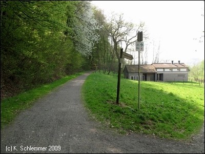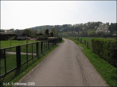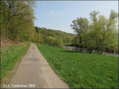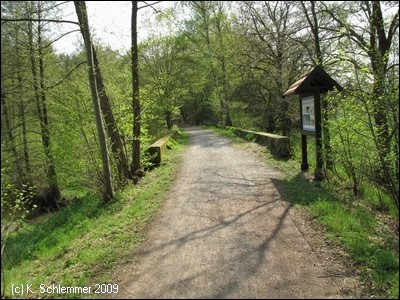 Vom Radweg aus in der Gegenrichtung gibt es zwar keinen Wegweiser, aber das "Tor" ist dennoch kaum zu Übersehen (wenn man nicht zu schnell fährt!). Man fährt nun entlang der Diemel.