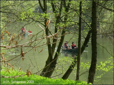 Die Alternative zum Radfahren: rechts von uns auf der Diemel wird gepaddelt! Ein landschaftlich schöner Abschnitt am Rande des Waldes