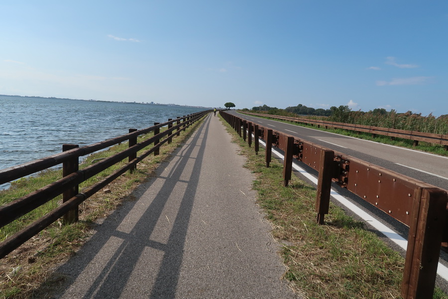Der Damm mit dem Radweg aber führt hinüber nach Grado und zu den Stränden der Adria.