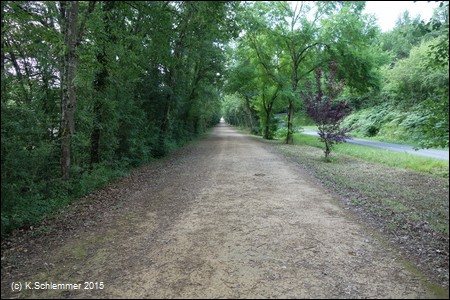 Von hier aus sind es etwa 43 km zum Bahnhof Castres, immer auf der alten Bahntrasse, weitestgehend autofrei. Nach den Beschreibung im Internet soll es für die Rückfahrt auch einen Busverkehr mit Fahrradtransport geben (Tarn Bus 703), eigene Erfahrungen habe ich hierzu nicht. Vom Bahnhof Castres aus kann man aber mit dem Zug nach Saint-Sulpice fahren (Linie Mazamet-Castres-Toulouse) und auf dem Radweg entlang des Flusses Tarn nach Albi zurückfahren (gut 60 km, siehe weiter unten).