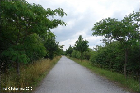Die Strecke ist nicht asphaltiert, der verfestigte Sand/Splitt ist aber gut befahrbar (wenn es trocken ist). und eine Kilometrierung ist vorhanden.