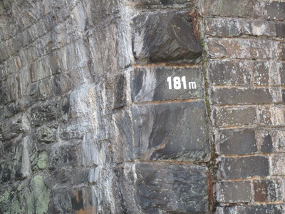 Ein paar Daten (lt. Infotafel vor Ort): gebaut von 1893-1895, 10 Brückenpfeiler, zweimal wurde die Konstruktion verstärkt. Höhe über dem Tal: 32 m, Länge: 115 m . Rund 55.000 Nieten halten den grazilen Koloss von ca. 280 Tonnen zusammen.