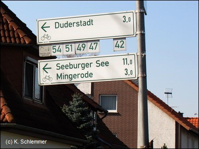 Die alte Bahnstrecke (Leinefelde) - Duderstadt - Wulften führt durch das Harzvorland entlang der Hahle und der Rhume bis an die Oder (Harz). Flussaufwärts durch eine landschaftlich reizvolle Gegend erreicht man nach etwa 14 km Pöhlde und damit den Anschluss auf den Bahntrassenradweg Herzberg-Rhumspringe. Ein Teil der alten Bahnstrecke ist als Bahntrassenradweg ausgebaut (Gieboldehausen - Bilshausen - Wulften), ein weiterer Streckenabschnitt (ab Rollshausen) sollte schon vor Jahren folgen. Seither hat sich jedoch wenig getan. Nur die Oderbrücke und der Anschluss an den Bahnhof Wulften wurden ausgebaut. In Rollshausen wurde die Brücke über die Suhle abgerissen, danach blieben die Brückenlager zurück. Inzwischen ist anscheinend der weitere Ausbau auf der stillgelegten Bahntrasse aufgegeben worden und damit die Chance für einen durchgängigen Radweg auf der Bahntrasse von Duderstadt/Westerode nach Wulften. Von Göttingen auf der alten Trasse der Gartetalbahn kommend muss zunächst die Steigung zwischen Rittmarshausen und der L 569 überwunden werden, da der Radweg hier nicht auf der Bahntrasse verläuft. Vor Nesselröden erreicht man wieder ebenes Gelände. Entlang der Nathe fährt man Richtung Duderstadt und erreicht nach etwa 5 km Westerode.