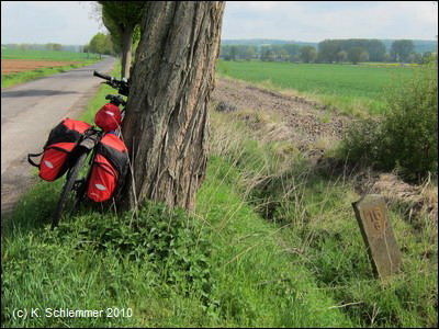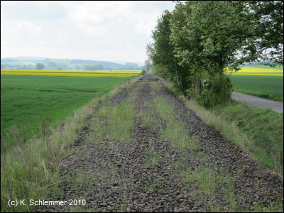 Dort trifft man auf die alte Bahnstrecke. Die Gleise sind abgebaut (Blick Richtung Duderstadt. Wir folgen der Beschilderung nach Mingerode auf einer Nebenstraße.