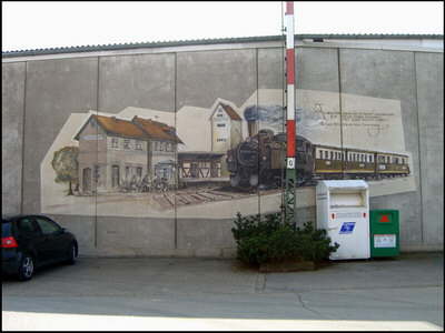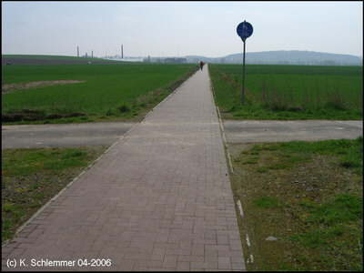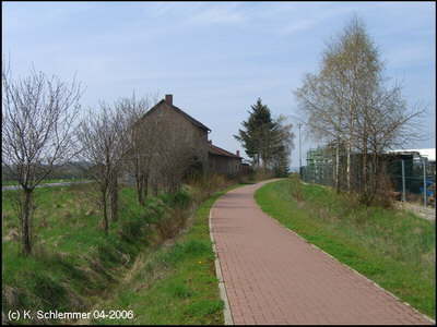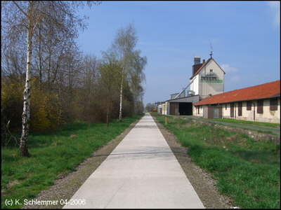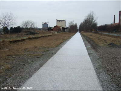 Betonierter Radweg Richtung Bahnhof, Reste der Gleisanlagen und andere Bahnrelikte!