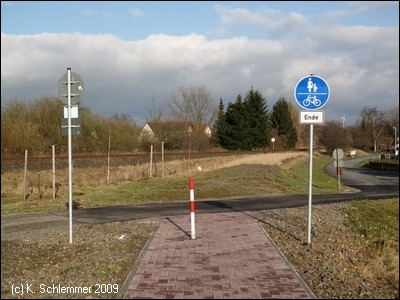 Hier endet der Radweg, auf der Straße geht es weiter zum Bahnhof.