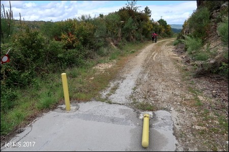 Die Trasse schneidet sich durch die Felsen. Bei Fortunho geht es kurz an der Straße entlang, die Autobahn wird zweimal unterquert.