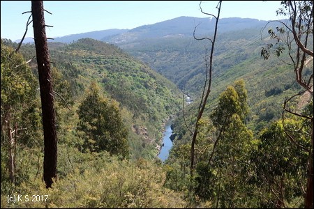 Weit unten in der Schlucht windet sich der Rio Tamega um die Felsen.
