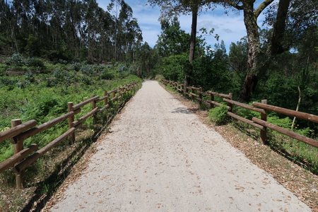 Die Bahntrasse verläuft nun direkt neben der Straße. Doch schon bald zweigt die Ecopista von der N16 nach links ab und führt durch ein Waldgebiet Richtung Arcozelo.