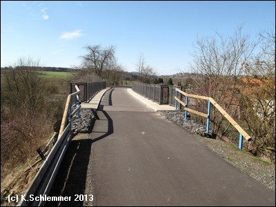 Noch ein kurzes Stück bergab, dann führt die Trasse wieder leicht aufwärts nach Höringhausen. Die Gestaltung der kleinen Brücken ist sehr schön gelungen!