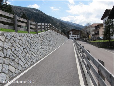 Ein breiter Radweg und aufwändige Geländer - kilometerlang - vorbei am alten Haltepunkt Kastelruth.