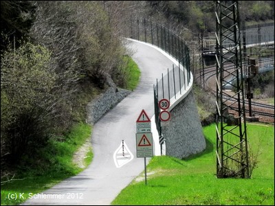 Hier waren aufwändige Arbeiten zur Sicherung des Hangs erforderlich. Wir nähern uns nun bereits der Kehrschleife.