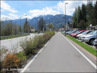 Am südlichen Ortsausgang ist der Radweg Richtung Brixen dann gut zu finden. Kerzengerade Strecke!