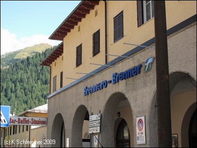 Am Brennerpass, in 1374 m ü.NN geht es los. Blick auf den Bahnhof am Brennerpass.