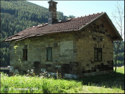 Ein Bahnwärterhäuschen verfällt langsam (km 232). Relikte aus vergangener Eisenbahnzeit!