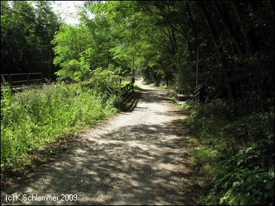 Das sieht schon sehr nach Eisenbahn aus! Ein aufwändiger Radweg ist auf dem rechten Gleisbett der alten Trasse entstanden.