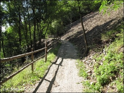 Am Hang entlang erwarten uns kleinere Steigungen und Gefälle. Die starken Regenfälle im Herbst 2009 hatten zu einem Erdrutsch geführt, die Strecke war an mehreren Stellen blockiert.