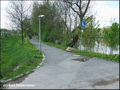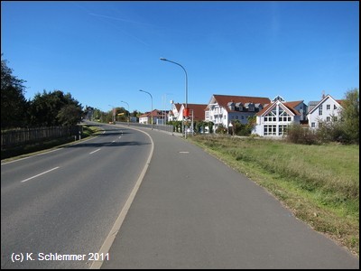 Nun geht es Stadt auswärts. Der Radweg führt direkt an der B7 entlang.