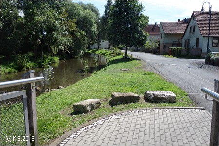 Am Wasser entlang und irgendwie zum südlichen Ortsende. Ein Wegweiser führt nach Kaltensundheim.