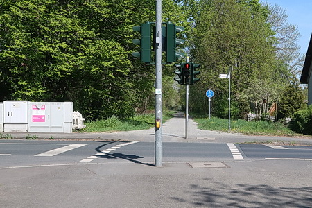 An der Ampel wird die Bundestraße 3 überquert, hier endete früher der Asphalt.