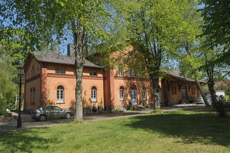 Besonders schön ist der Radweg direkt an der B3 nicht, aber immerhin ein asphaltierter Weg. Wo ist nur die stillgelegte Bahntrasse geblieben? Die hat bestimmt eine geringere Steigung und verläuft abseits des Straßenverkehrs. Der Bahnhof von Dransfeld ist ein schönes Backsteingebäude abseits der Radroute mitten im Ort.