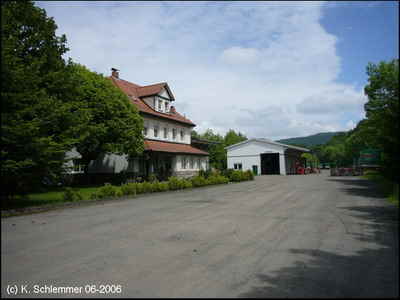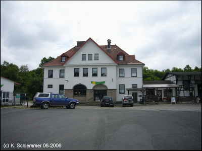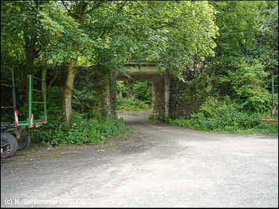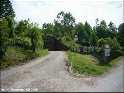 An diesem Straßendurchlass kann man rechts abbiegen Richtung Großalmerode. Der ehemalige Ostbahnhof, der keine Bahnverbindung zum Westbahnhof hatte (zu steil für die Bahn), ist heute ein stattliches Wohnhaus.