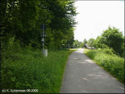 Der Bahnhof Hundelshausen ist bewohnt. Es folgt eine Brücke, ab hier ist die Trasse überbaut.