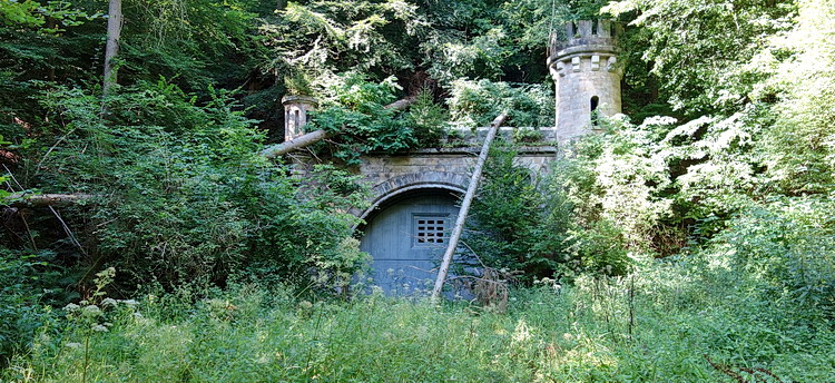 Das Portal des Fiedatunnels (hier: das Westportal) liegt versteckt im Wald, hier schlafen die Fledermäuse.
