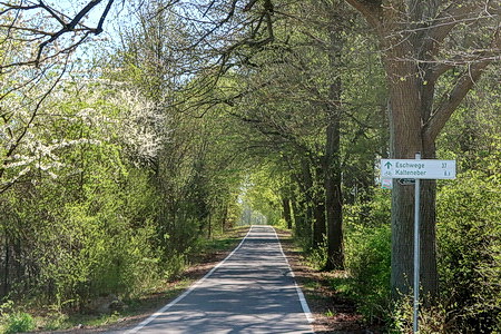 Im Tal des Baches Rosoppe ist der Weg dann asphaltiert und Richtung Eschwege beschildert.