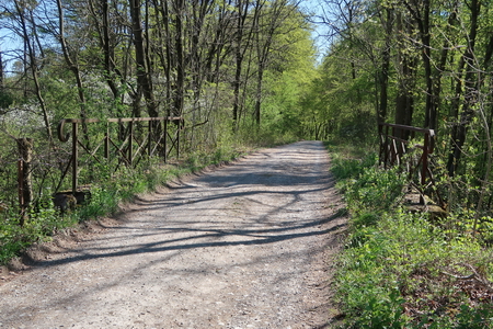 Immer weiter leicht bergauf erreicht man bald den Abzweig zum Bahnhof Fürstenhagen. Hier begegnet man wieder der Bahntrasse. Der "§löcherige" Weg erfordert Konzentration beim Radfahren.