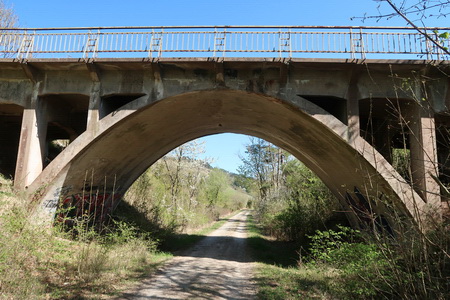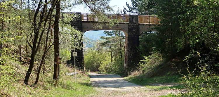 Der asphaltierte Radweg führt weiter nach Frieda zum Anschluss an den Werratalradweg. Der Kolonnenweg der Grenztruppen der DDR ist noch Teil des Radwegs und die Brückenlager des gesprengten Viadukt liegen hoch über der Talsohle.