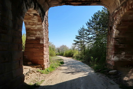 Nun beginnt die "Steilstrecke", die von der Eisenbahn anfangs im Zahnstangenbetrieb überwunden wurde. (max.. 5% Steigung zwischen Kilometer 6,4 und 8,7). An diesem "Straßendurchlass" befand sich 2006 noch eine Brücke.