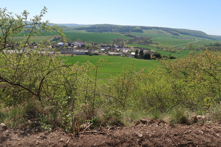 Noch eindrucksvoller ist der Blick vom Abhang der Dieteröder Klippen tief hinab und weit Richtung Süden Richtung Werratal.