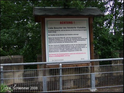 Bitte die Sicherheitsregeln beachten, nicht auf das Geländer klettern. Bei Gewitter das Viadukt verlassen!