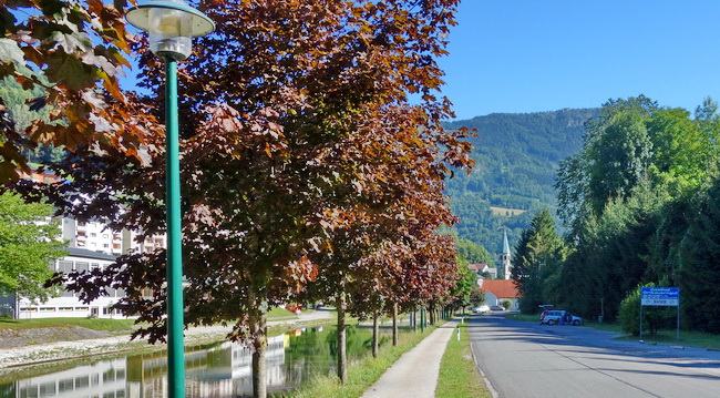 Wir beginnen die Fahrt an einem kleinen Parkplatz am Ortsausgang von Reichraming. Dort, am Reichramingbach, befinden sich Infotafeln zum Radweg.