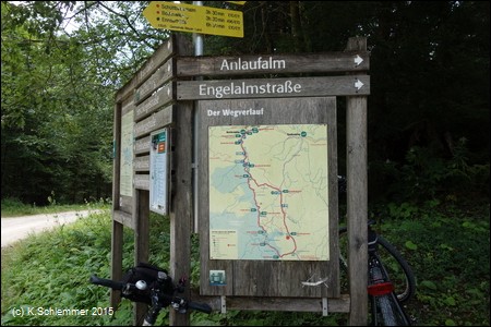 Am Abzweig zur Anlaufalm stehen Informationstafeln. Auch der Wanderbus hält hier.