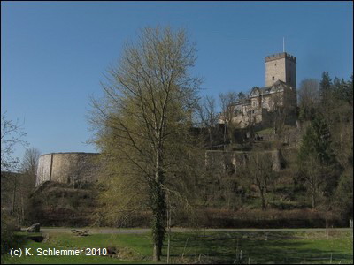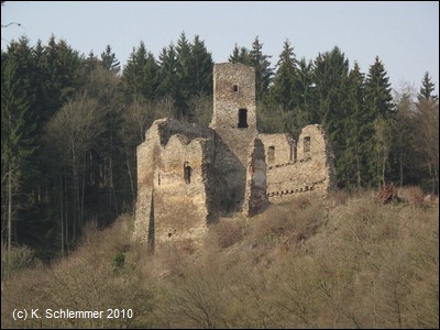 Am Ortsende zweigt der Radweg links ab Richtung Hammermühle. Die Strecke entlang des Ahbaches wurde neu ausgebaut und asphaltiert. Auf der anderen Talseite liegt die Ruine der Burg Neublankenheim.