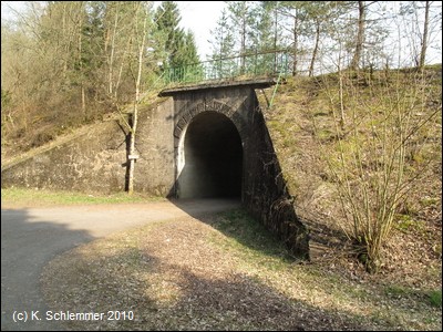 Auf gut ausgebauter Strecke geht es Richtung Ahütte. Einige alte Brücken werden umgangen, es resultieren einige "Buckel" im Höhenprofil (hier am Abzweig zur Nohner Mühle).