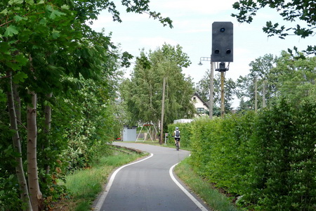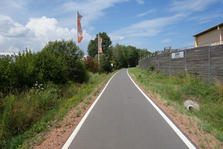 Durch den Park folgt man der Trasse in nordöstlicher Richtung. Dann beginnt der Asphalt.