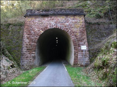 Der Pleiner Tunnel taucht auf: Mit 585 m Länge ein ordentlich langerTunnel! Zum Schutz der Fledermäuse hat man eine Zwischendecke eingezogen, eine geniale Idee. (Schade, dass das beim Milseburgtunnel in der Rhön nicht umgesetzt wurde).