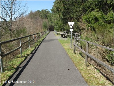 Weiter aufwärts führt der Radweg. An einem Rastplatz führt ein Abzweig zum Weinfelder Maar.