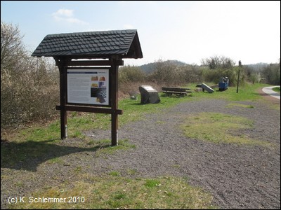 Am Bahnhof findet man (neben den ungeeigneten Fahrradständern - keine vernünftige Möglichkeit zum Anschließen) Informationen zum Vulkanparkradweg. An der Bahnstrecke entlang geht es stadtauswärts.