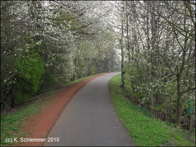 Dann geht es unter der Autobahn A48 durch. Neben dem Asphalt befinden sich in regelmäßigen Abständen Kilometerangaben, hilfreich für Läufer u.a.
